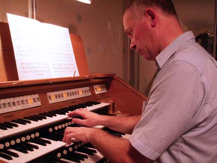 Sometimes we connect the laptop up to the organ. The organ has its own built in sequencer, but we can do more to the 3 manual Eminent organ when we use the different software on the laptop. The Eminent organ has some music in the sequencer library that cannot be changed. All the other memories can be modified. There are lots of additional stops that can be added to the alterable stops which makes this a fantastic organ to use. Because they are all located in firmware they can be loaded extremely quickly and easily. The organ features an Autobass, which couples the lowest pressed key on the great, to the pedal so that the pedals do not need to be played. This has helped the odd pianist who has used the organ.The Organ also has a Transposer - 3 semitones up and down. The Eminent Organ also has 12 different Tuning Temperaments selectable by the organist at will but as yet I have not mastered these. All these controls are keys on the manuals + a piston to activate them.