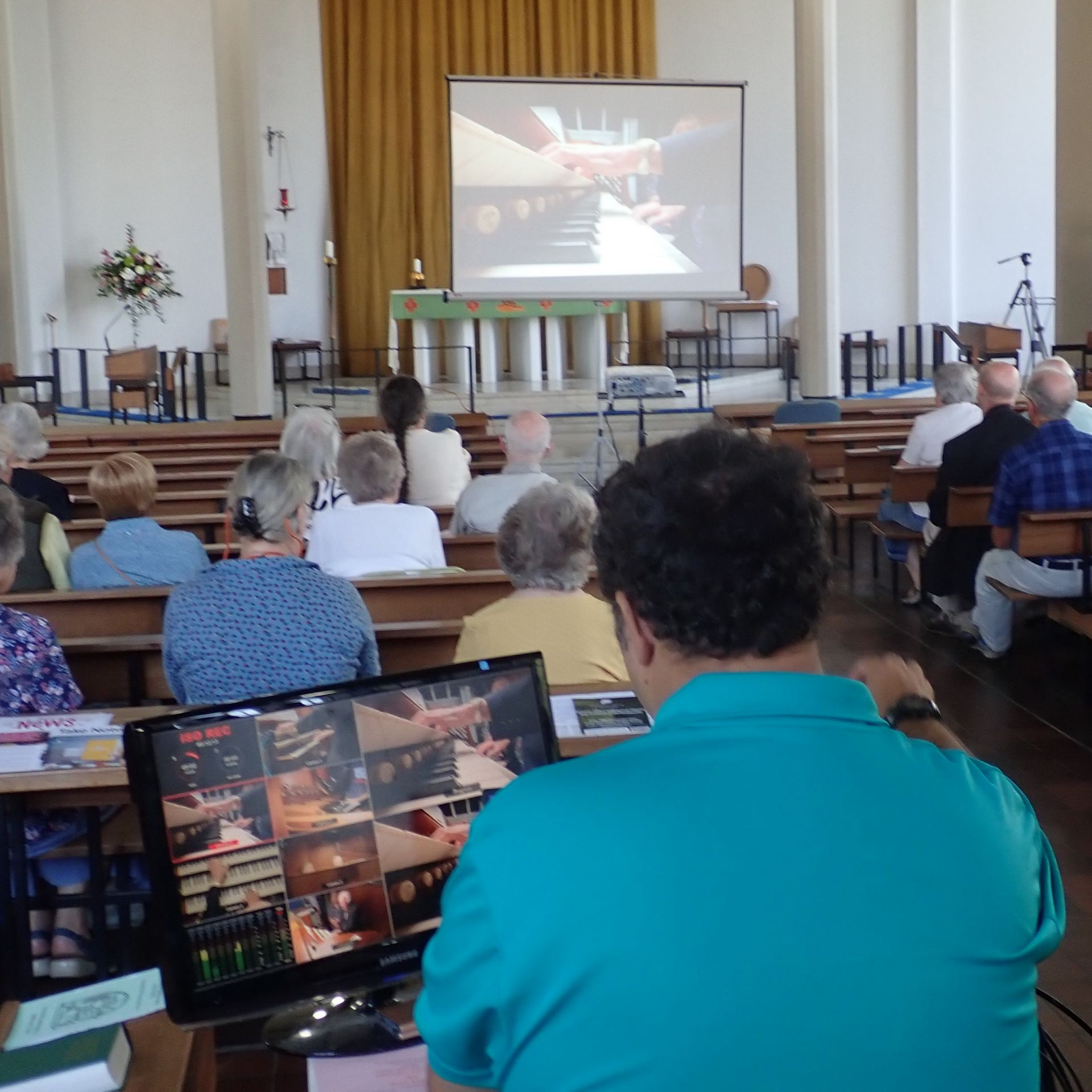 The only problem is that the organ console is small and often hidden and seeing the playing makes the experience 1000x better. So what we do is to rig cameras around the organ so the audience can see as well as hear the recital.