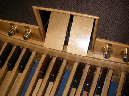 The music stand can move in and out. this is a very useful feature to help with the reading of the notes.The Cornet when it was delivered would not play below Tenor C. I liked this stop, so using the Maestro Tonalis Software I was able to create a reasonable sounding Cornet on all the notes. The oboe on the swell was not a good solo stop as it was voiced too low. Again using the Maestro Tonalis Software I was able to change the level of the oboe to a better level, so it is now slightly louder and more equivilent to the clarient on the Choir Manual. Using this software I can voice the organ on my own without the need to call in Cathedral organs to do this for me. One extra we bought was a channel on the swell and choir expression pedals. This records the settings of these pedals via the midi, so the playback can also change the loudness of the swell and the choir. We also bought some toe pistons. We only have 4 at present. We don't use them very much. As we become better we can have more installed. The four toe pistons we have are Advance, Swell to Pedal, Great to Pedal and Swell to Great. They seem to be more than sufficient at the moment.