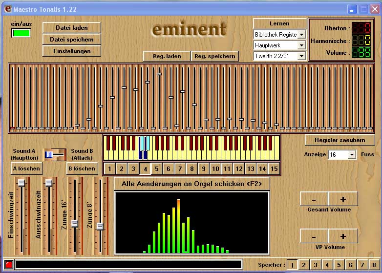 The Eminent organ is great fun to play. The Eminent organ sounds realistic. Using the built in programmed pistons on the A channel I can increase the volume using the advance button. For special pieces I can set any of the other channels up B - P. It has a bank of extra stops that can be programmed in to give a wider range of stops than purely connected to the built in stops. The sounds are of a typical English church organ. With the Maestro Tonalis Software it is possible to make sounds like the Wald flute which cannot be bought on an electronic organ that we have seen. As delivered the organ would not play the cornet V down below tenor C. Using the Maestro Tonalis Software I created these stops. The oboe on the swell was also too quiet for a really good solo stop so using the software we changed this. The organ plus this software make the Eminent organ a great toy to play with. As well as a great organ the Eminent organ is also a very nice piece of furniture. We played extra to have a really nice solis wood roll top since we pull this down whenever we are not playing the organ. The Eminent organ is made largely from solid light oak unlike many other more expensive organs we looked at. The only thing we regretted has not buying an adjustable height bench as for a while my son could not do heal and toe on the foot pedals. In fact we still struggle with a few of the notes, but and the bench is pulled in and pushed out to now account for my longer legged sons.